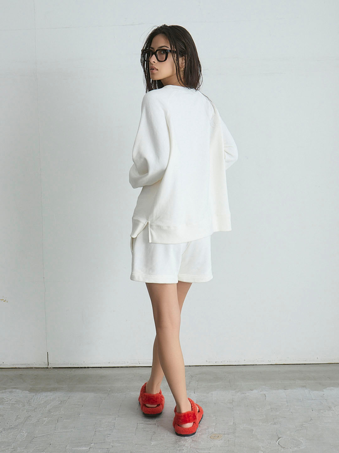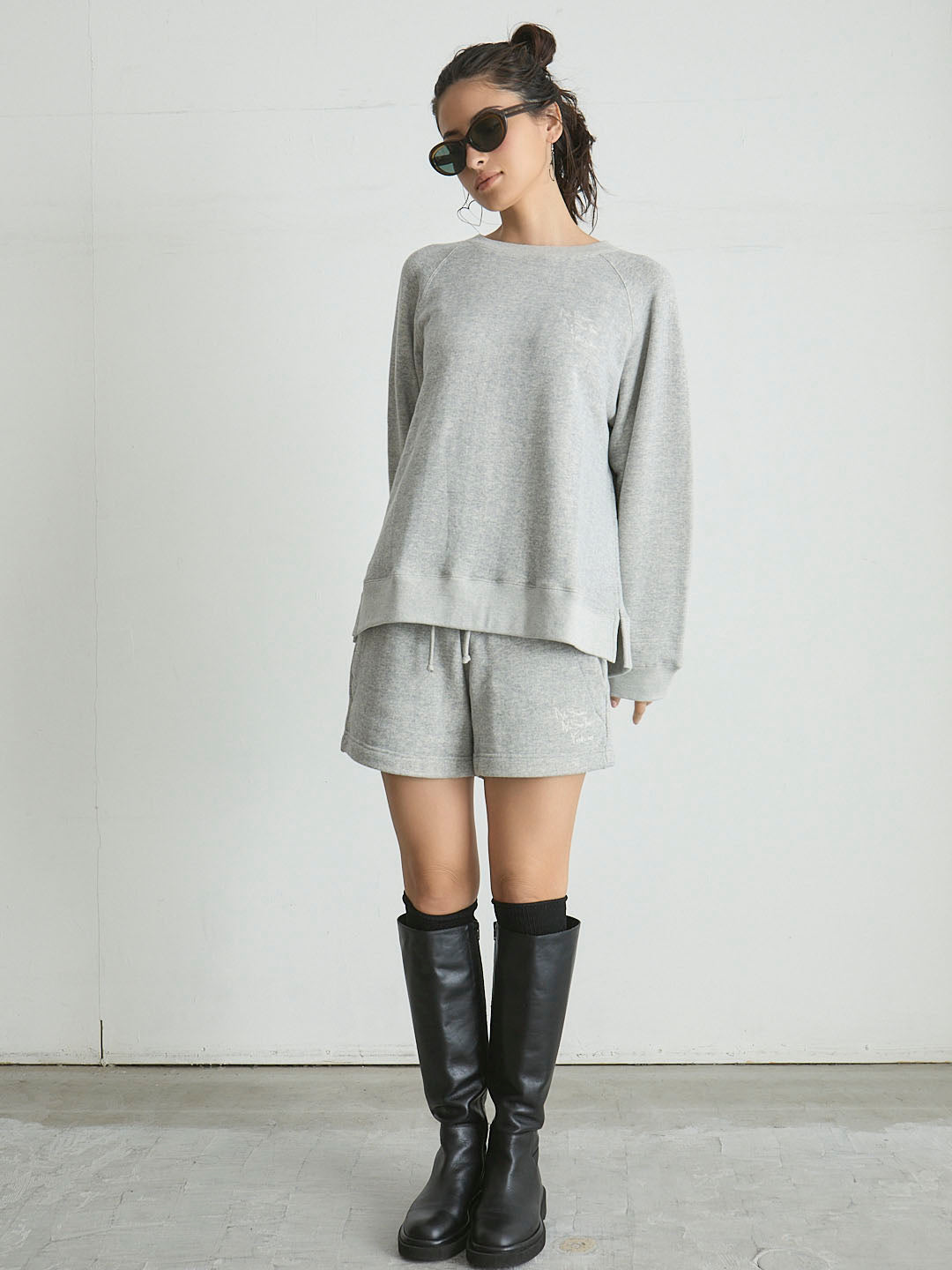 コットン100%の吊り裏毛生地は、空気をふくんだようなふっくら感と、洗うほどに育つ柔らかさが特徴です。吊り編み機で丁寧に編まれた素材だからこそ、長く着るほどに心地よさが増していきます。