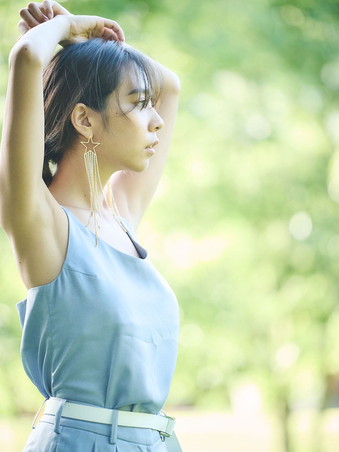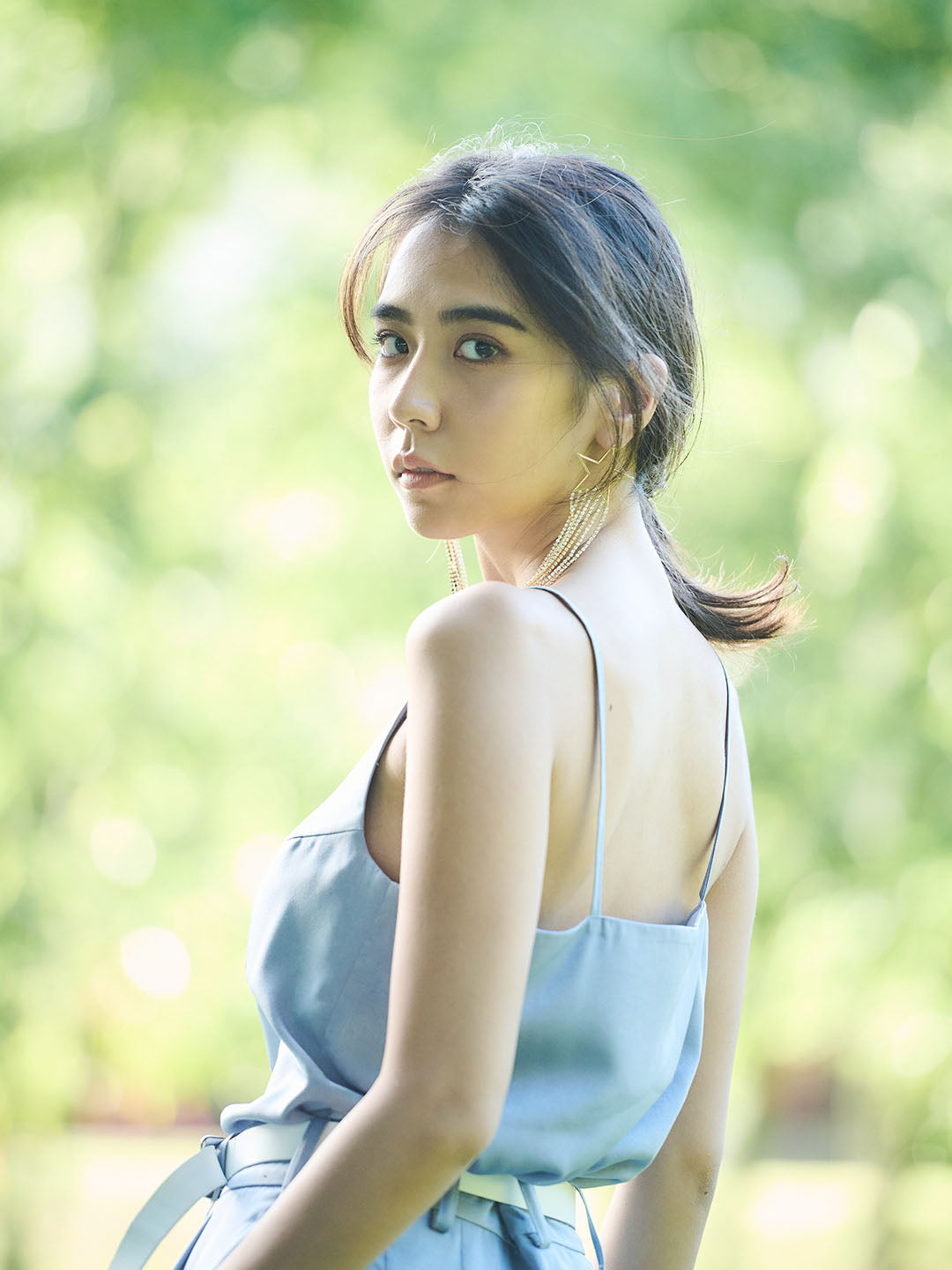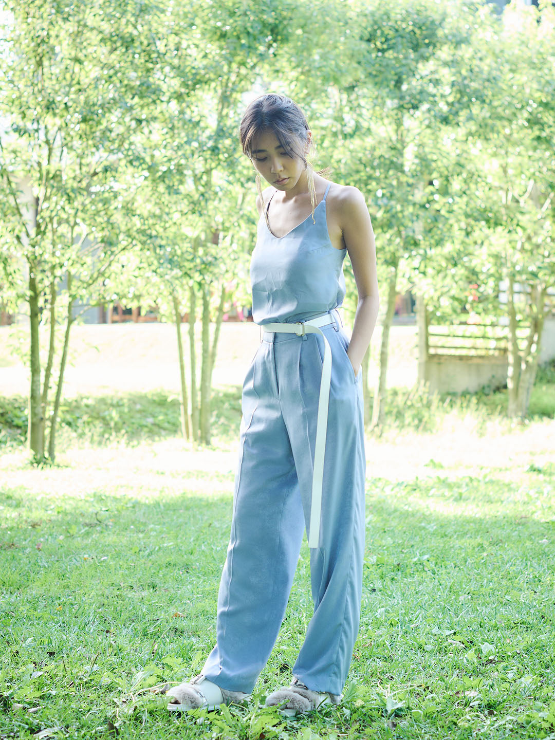 素材にこだわったキャミソール。スウェード調のサテン素材を使用し、しっとりとしたピーチ感とチンチラ加工を施すことでヴィンテージ感のある表情に仕上げました。ベージュとライトブルー、色でも夏を感じれるカラー展開にしました。