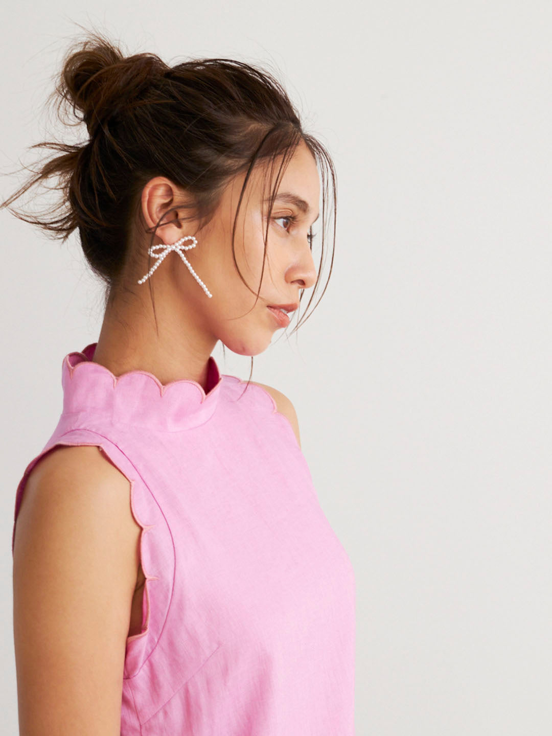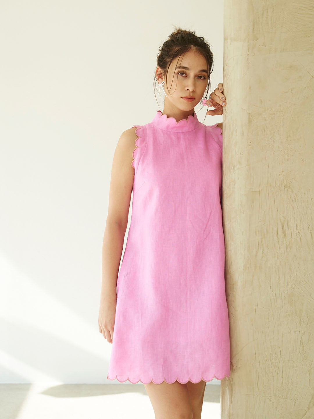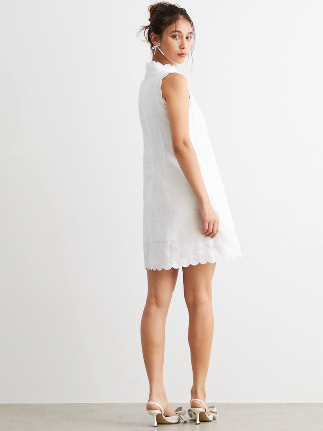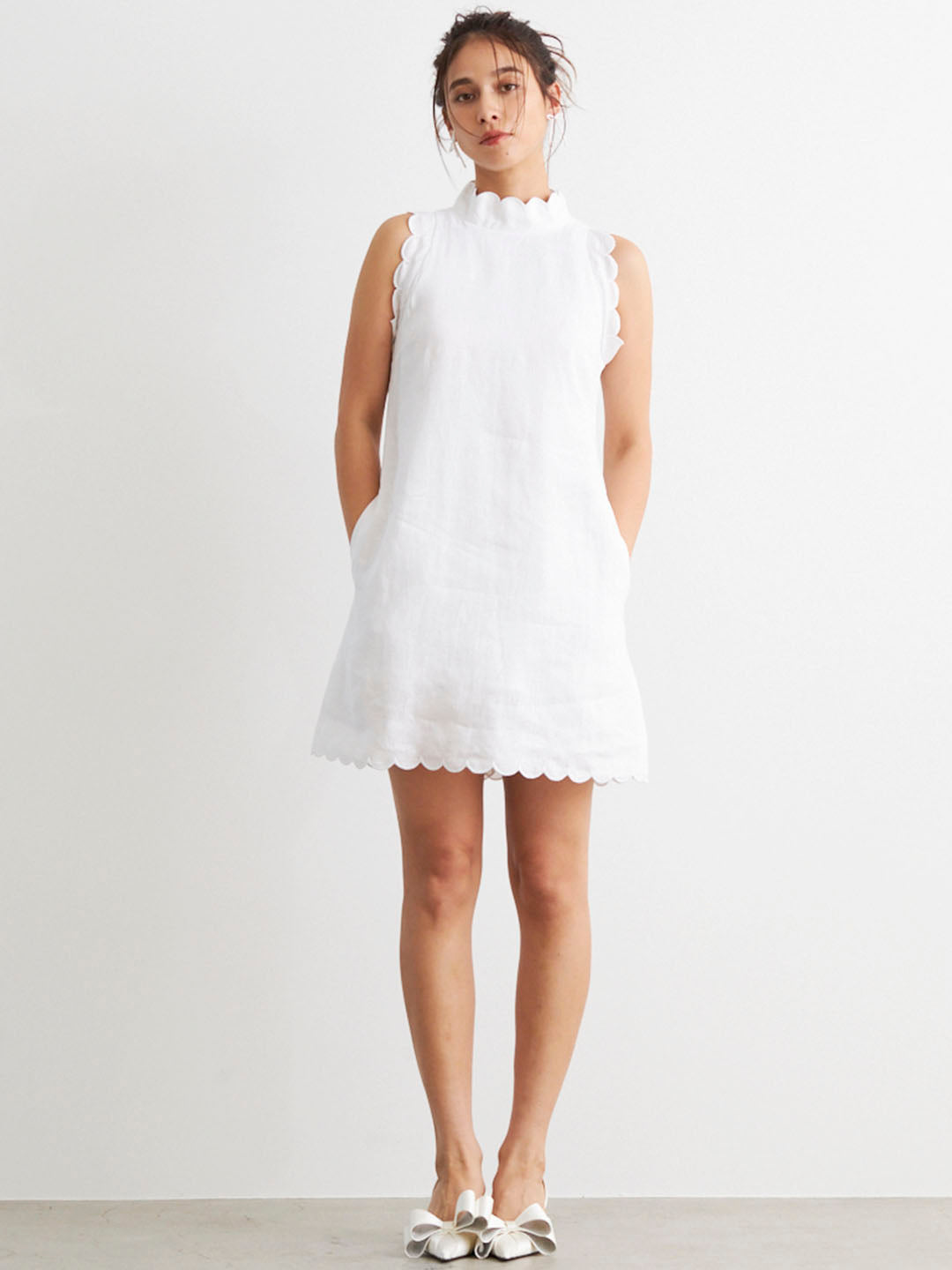 スカラップデザインが可愛らしさを格上げしてくれるミニワンピース。