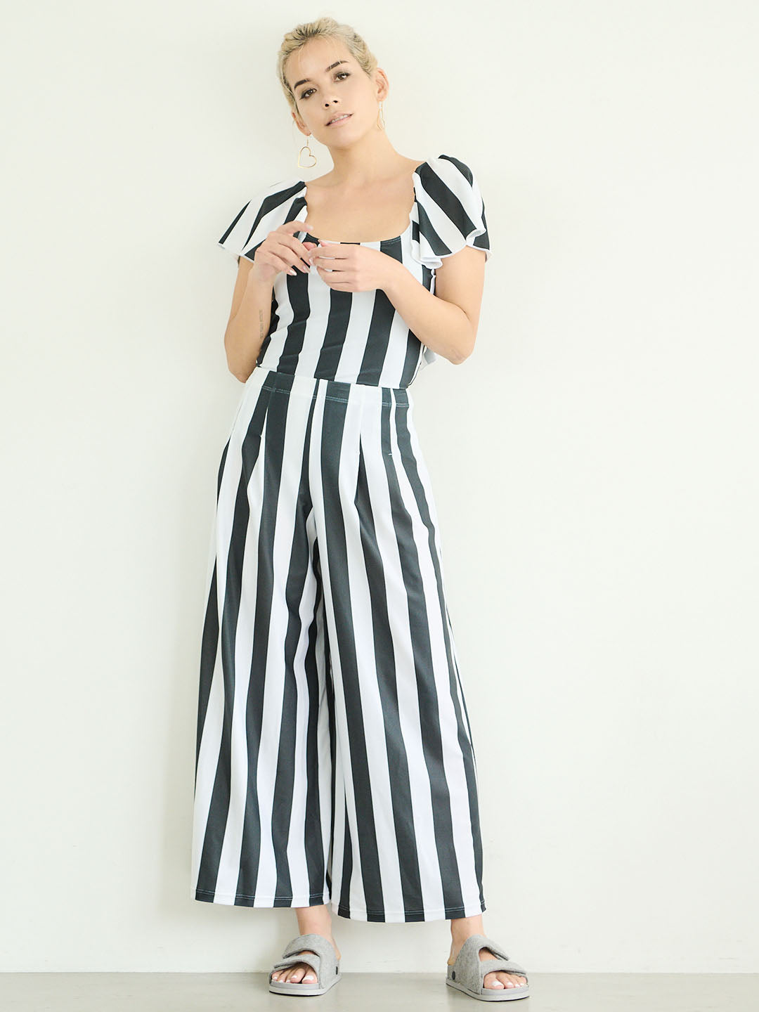 まるで洋服のような雰囲気が着やすさを感じさせるラッシュパンツ。 タックが施されているので、ワイドなシルエットになり腰回りやヒップのもたつきを隠してくれます。太目のストライプも縦のラインを綺麗に見せてくれます。ビーチやプールはもちろん普段使いもできるので、コーデのアクセントに。アーバンなムード漂う、洗練された一着です。